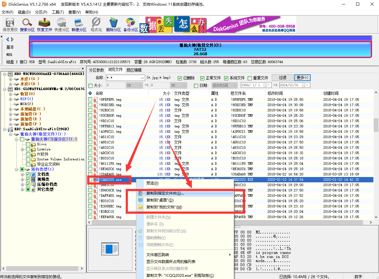 这个方法就是使用DiskGenius来帮助我们恢复被卸载的程序,在删除的文件里找到被卸载的exe文件,恢复即可。