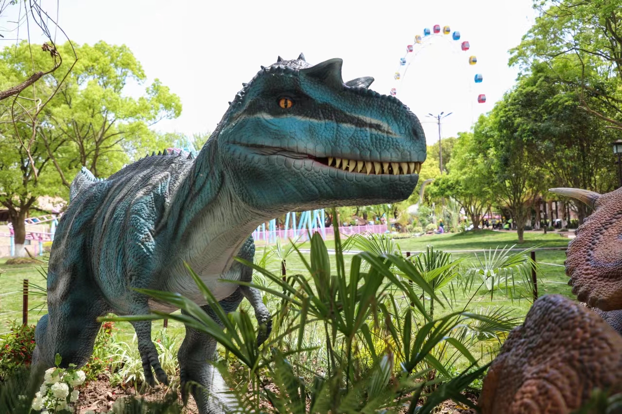 恐龙们追逐、怒吼视觉感受相当惊险刺激。除此之外,市民游客还可以体验恐龙滑滑车、骑乘恐龙等多个互动项目。