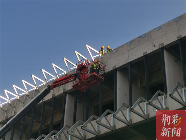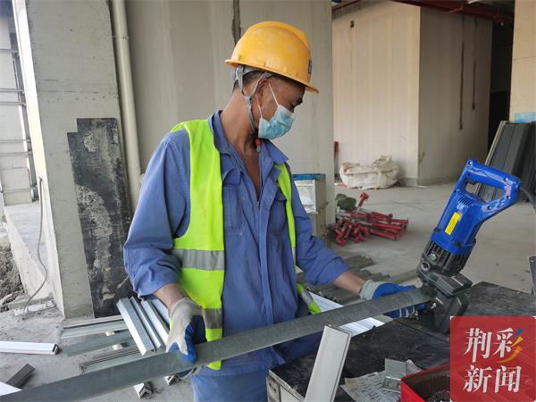 10月12日下午,记者在中建三局长江大学文理学院新校区二期B区建设项目施工现场看到,公共教学楼、图书馆、运动场等建设初具规模,施工人员全部佩戴口罩,进过消毒、测温、刷脸等程序后有序从住宿区域进入施工区域,片刻后,焊接声、切割声、捶打声、机器轰鸣声渐次响起。