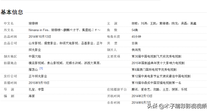 《琅琊榜》是由山东影视传媒集团、山东影视制作有限公司、北京儒意欣欣影业、北京和颂天地影视文化有限公司、北京圣基影业有限公司、东阳正午阳光影视有限公司联合出品,由孔笙、李雪执导,胡歌、刘涛、王凯、黄维德、陈龙、吴磊、高鑫等主演的古装剧。