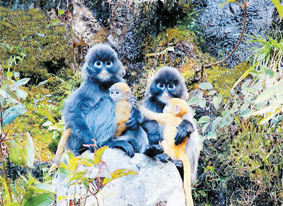菲氏叶猴在中国是国家一级重点保护野生动物,在《名录》中被称为中缅灰叶猴。云南省德宏傣族景颇自治州芒市轩岗乡的中缅灰叶猴群规模达320只,是迄今中国单一区域内发现的最大种群。 郑山河摄
