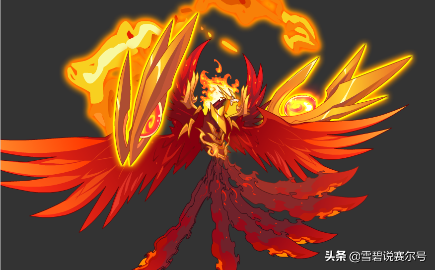 炽羽炎凰·朱雀:死亡时100%浴火重生一次,重生时恢复自身所有技能pp并抵挡2次攻击伤害(boss有效)。
