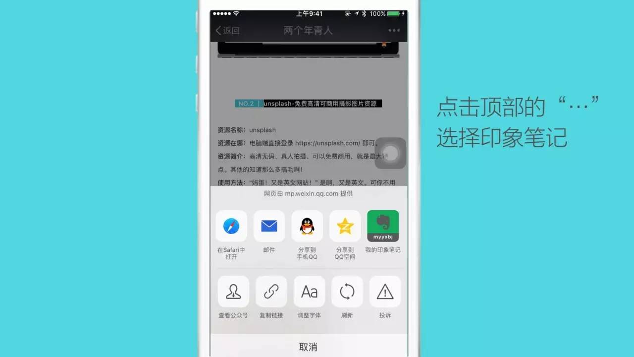 对于网页的收藏,只要你在手机中安装了印象笔记APP,浏览网页时,点击分享按钮,再点击印象笔记头像,当前页面或文章就直接被收藏到印象笔记中,而且自动同步;