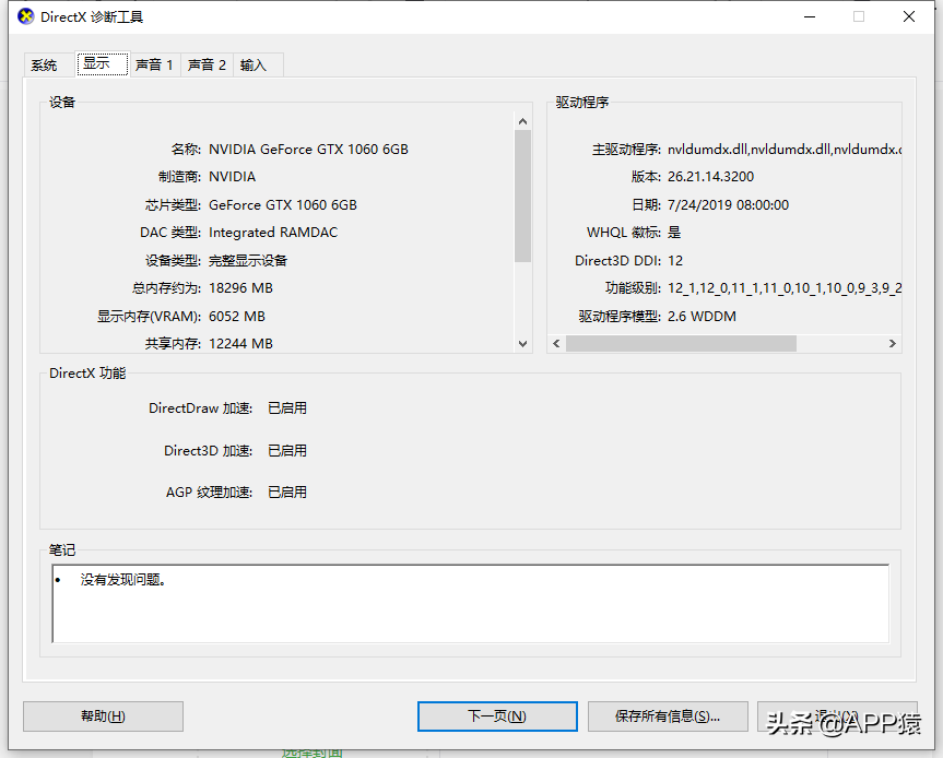 dxdiag是其实是Windows的DirectX诊断工具,优点利用它可以查看目前的系统,内存,显卡,及显示器和其它输入设备的信息,并且它的核心功能还可以用来诊断系统有关DirectX的错误,常玩PC上的游戏大作的同学一定不会感到陌生。
