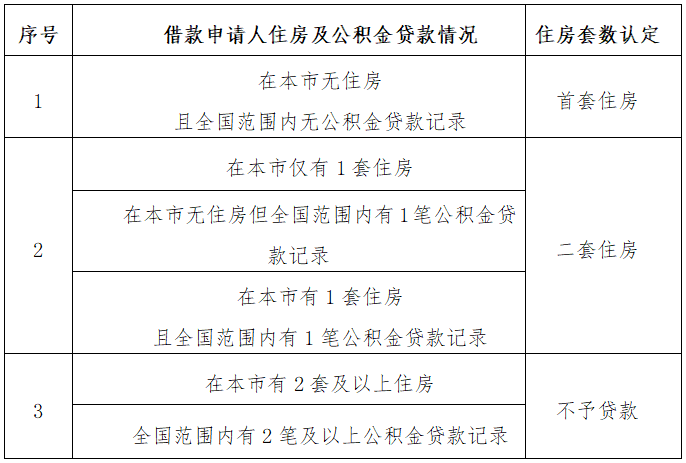 (4)借款申请人夫妻名下已有的住房公积金个人住房贷款(含政策性贴息贷款)记录及本市住房情况,应符合下表要求;同时,对于离婚日期为2017年3月24日(含)以后的借款申请人,在离婚一年内申请住房公积金个人住房贷款的,按二套房贷款政策执行。