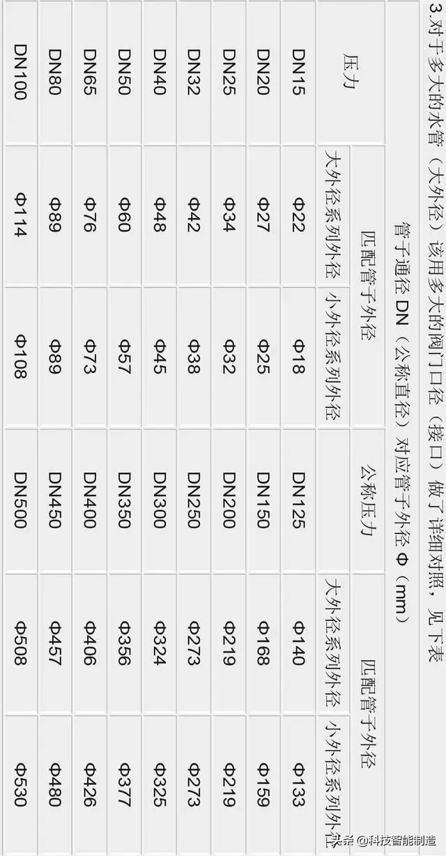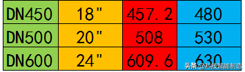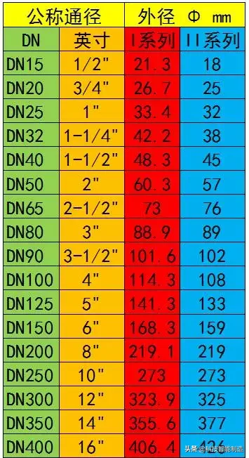 当然也有不一样的如3&34;*25=75这样四舍五入即DN80 还有一些带分号或小数点的英寸如1/2&34; 3/4&34; 1-1/4&34; 1-1/2&34; 2-1/2&34; 3-1/2&34;等,这些就不能那样算了,不过算也大致差不多,基本都是规定值: