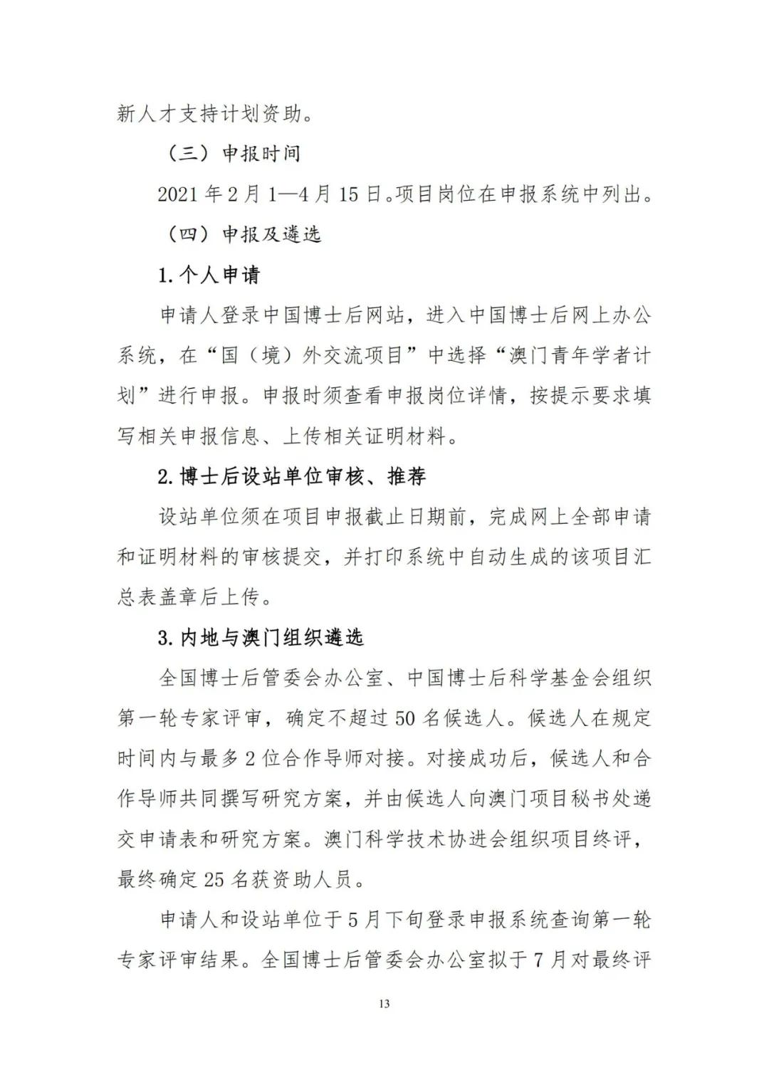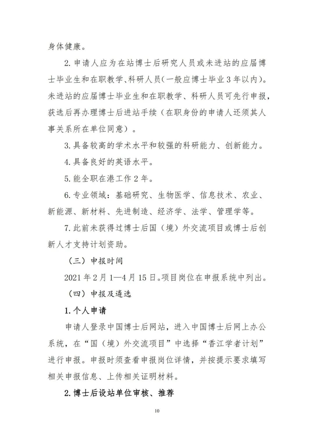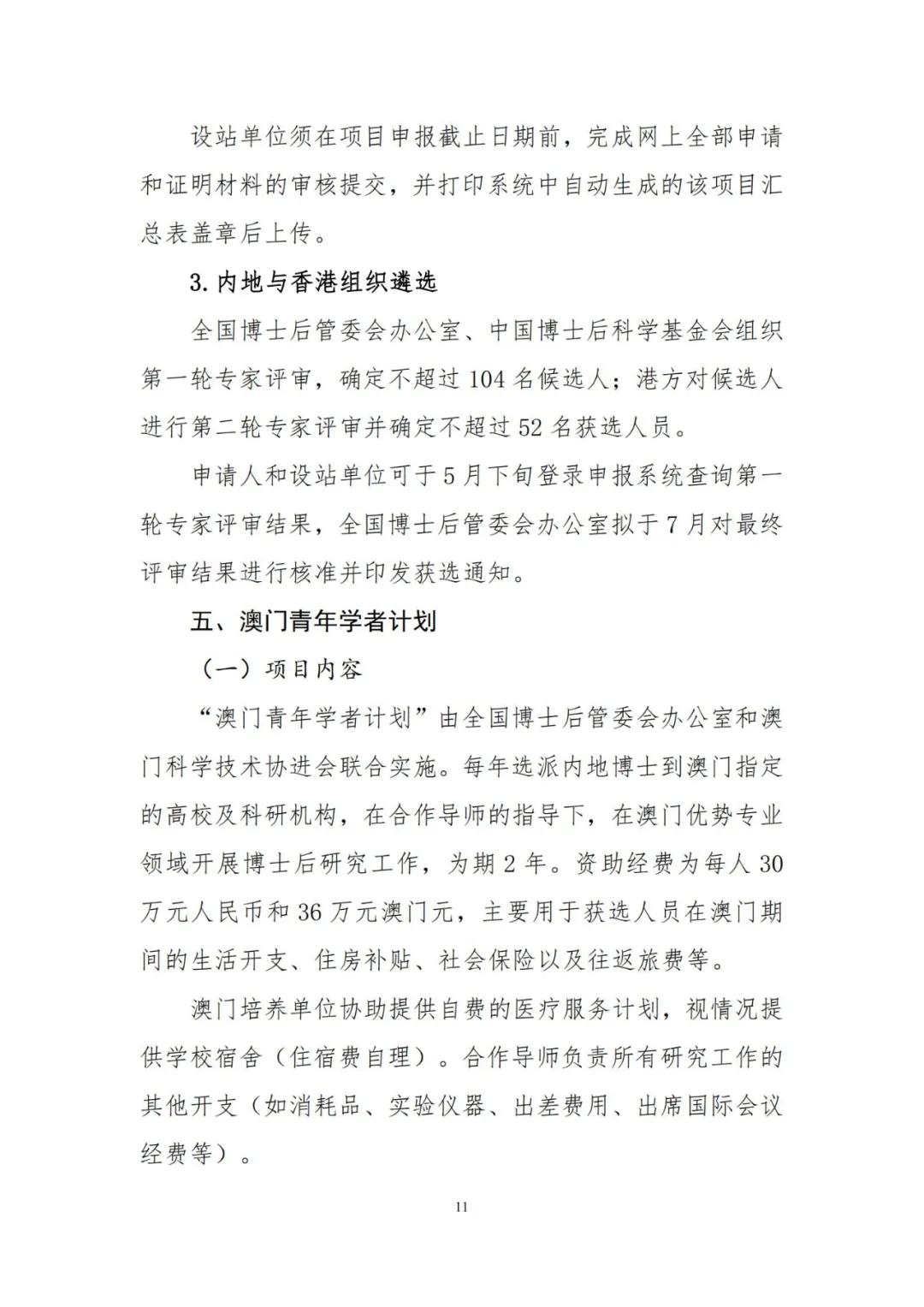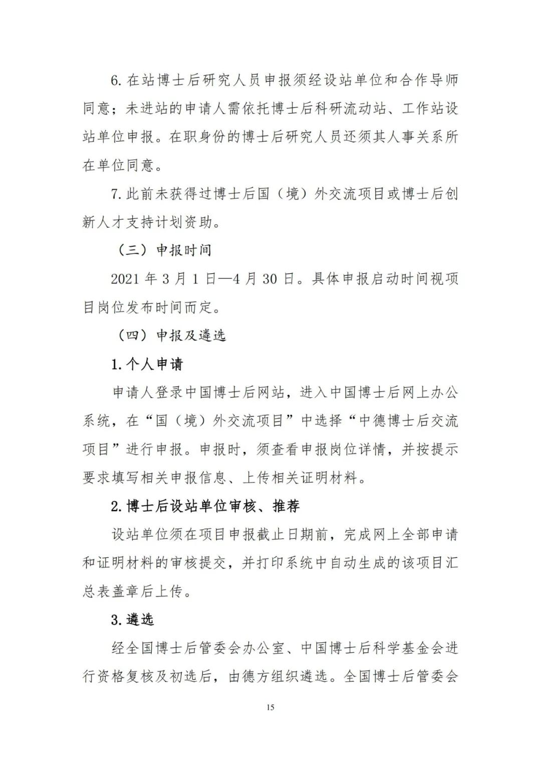 为加强博士后创新能力建设,进一步提升博士后国际化水平,人力资源和社会保障部、全国博士后管理委员会决定2021年继续实施博士后国(境)外交流项目,并编制了《2021年博士后国(境)外交流项目申报指南》(见附件),内容包括博士后国(境)外交流项目所属“博士后国际交流计划引进项目、派出项目、学术交流项目”,以及“香江学者计划”、“澳门青年学者计划”和“中德博士后交流项目”共6个项目的主要内容、申报条件、遴选程序、有关要求等。