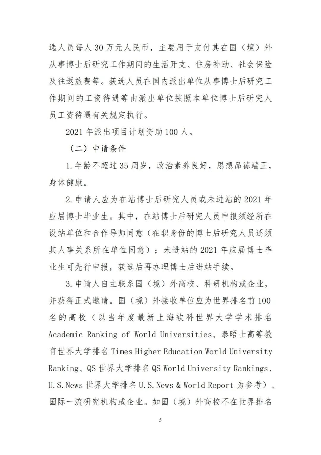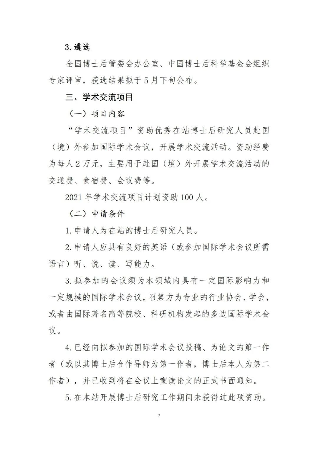 关于开展2021年博士后国(境)外交流项目申报工作的通知