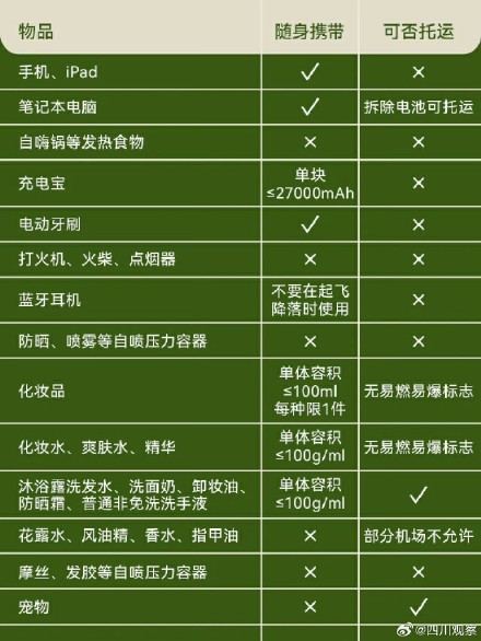 托运行李有哪些规定,什么东西不能携带?坐飞机携带物品攻略,戳图了解。(图源网络)