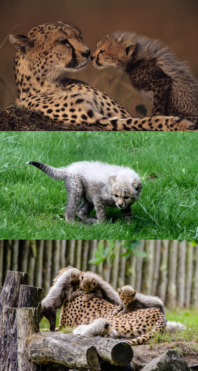 但是无论怎么说,蜜獾的滚刀肉作风是真实的,它让很多非洲的动物都厌恶无比也是真的。蜜獾几乎没有天敌,是因为“天敌”这个定义指的是一种动物专门去捕食和危害另一种动物。非洲能干掉蜜獾的动物有不少,但是基本没有专门去捕食蜜獾这个种群的动物,因为真的费劲,真的烦。关于非洲其他动物有多头疼蜜獾,还有个有意思的真事儿,就是在长期的自然选择下,很多猎豹幼崽也开始向蜜獾拟态,以迷惑其它大型食肉动物(这个拟态的含义大概就是:别过来啊,我是蜜獾,信不信我烦死你啊,再过来啃你脚后跟信不信),随便拼了几张图大家看看像不像吧。