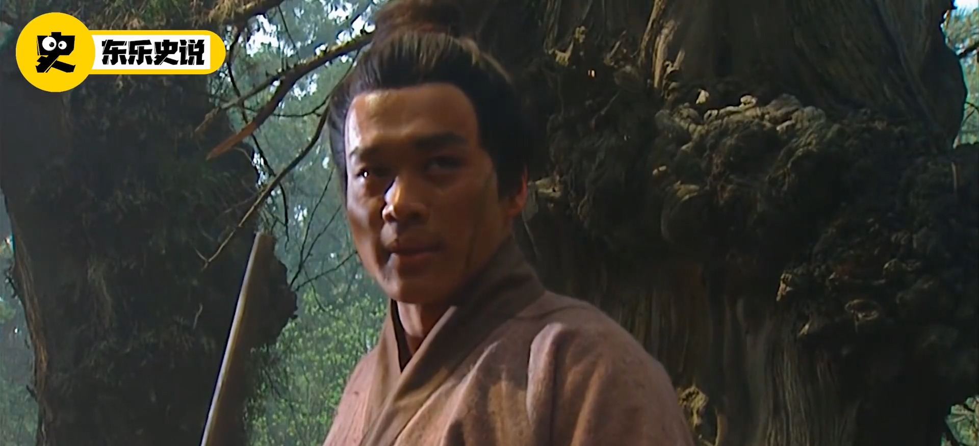 面对老虎的出现,武松握紧唯一的武器,静等老虎的出击,结果在老虎高高跃起时,武松也想来个一招击毙,怎料击中树干,折断了木棍。