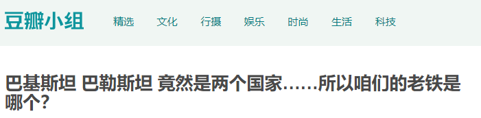 哪怕在豆瓣小组这个年轻人扎堆的地方,也是有人发帖询问巴勒斯坦和巴基斯坦的区别。