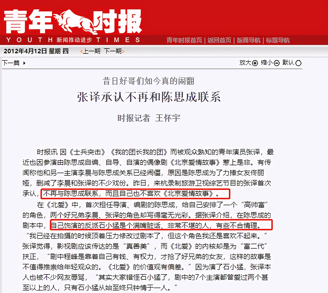 据传当时剧播出后,张译就因为不满剧中人物设定,和陈思诚闹翻了。从此,两人没再有过合作。
