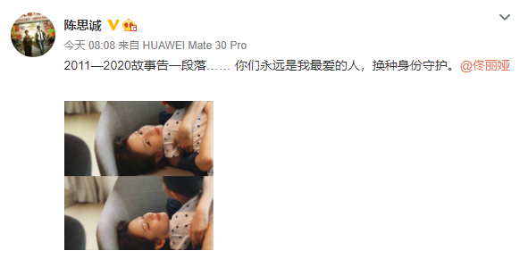 陈思诚发文:“2011—2020故事告一段落…… 你们永远是我最爱的人,换种身份守护。”发布时间8分零8秒,卡点佟丽娅生日8月8日。