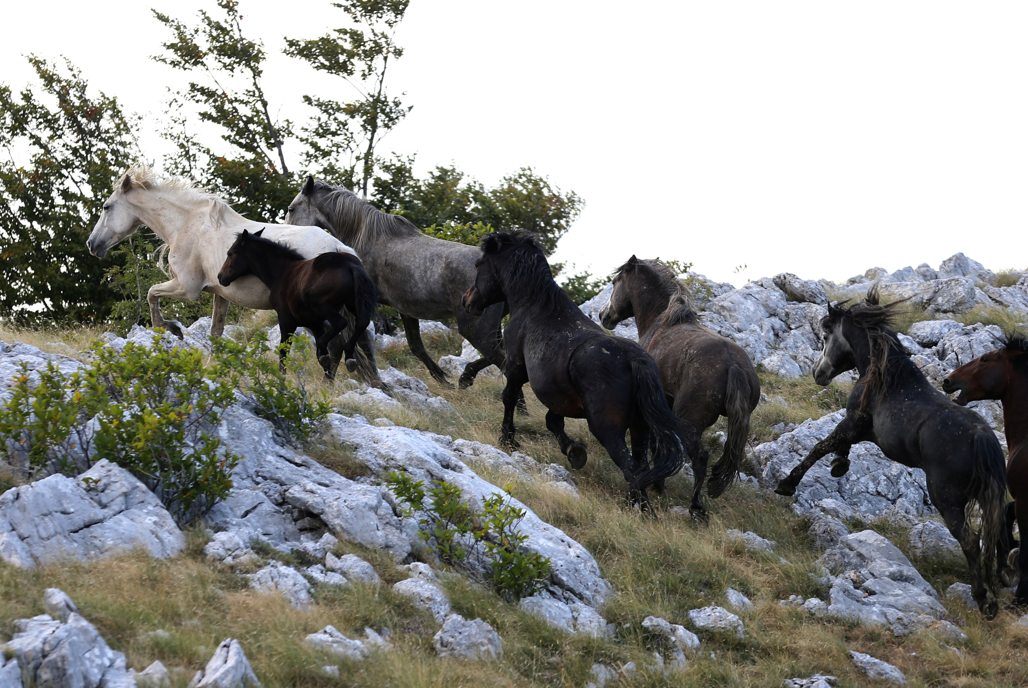 9月13日,野马在波黑利夫诺附近的山上奔跑。 新华社/路透