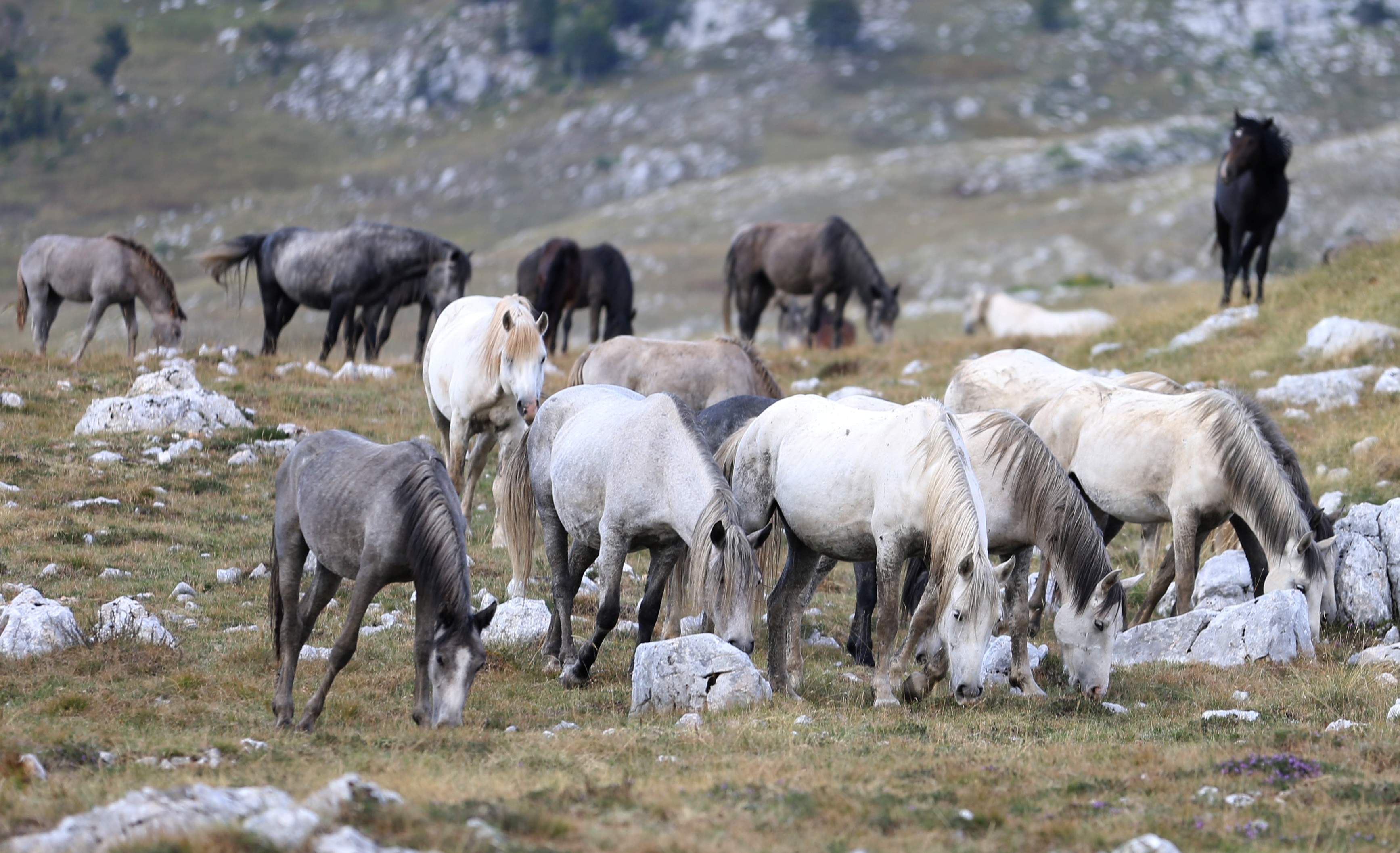 9月13日,野马在波黑利夫诺附近的山上吃草。 新华社/路透