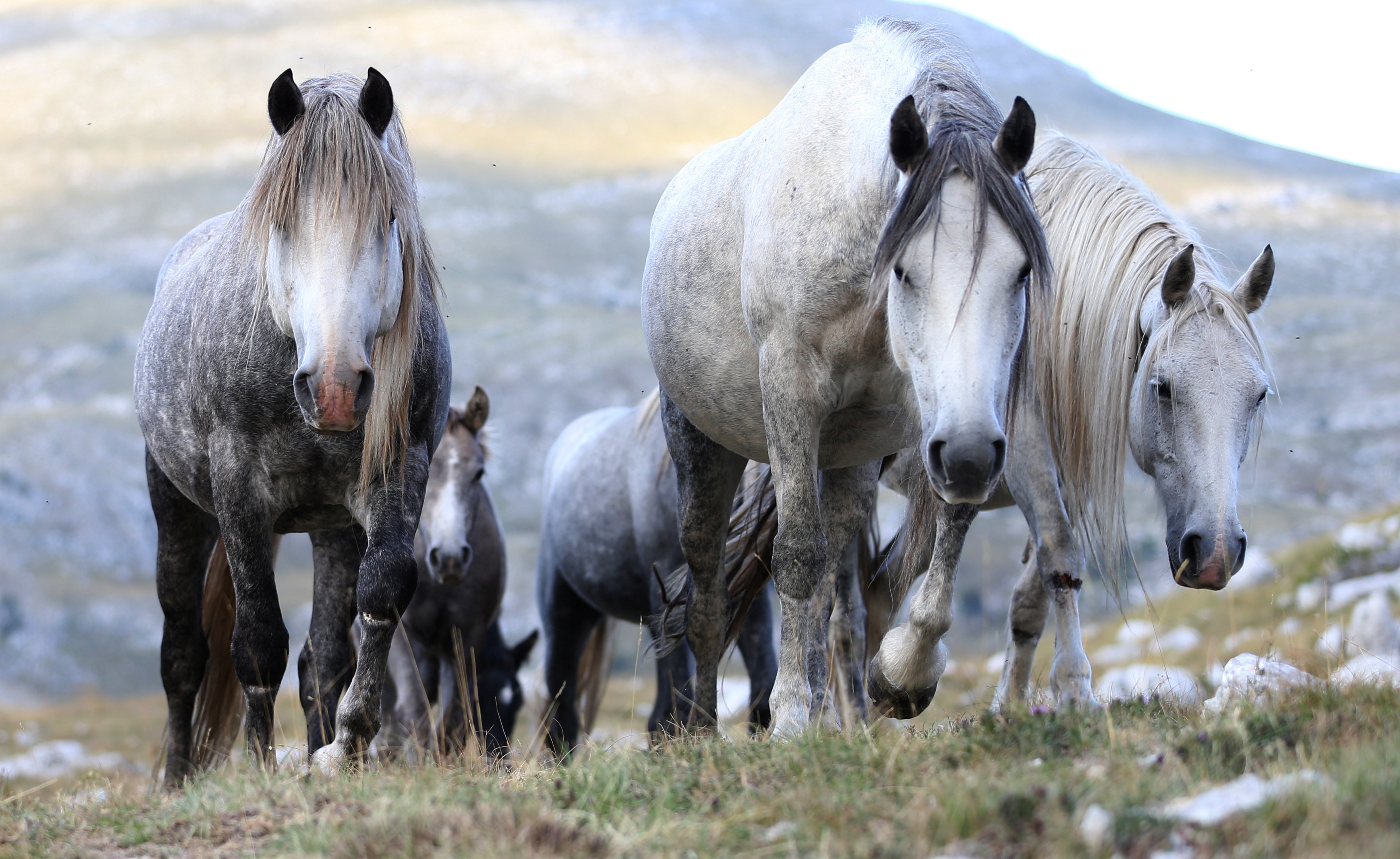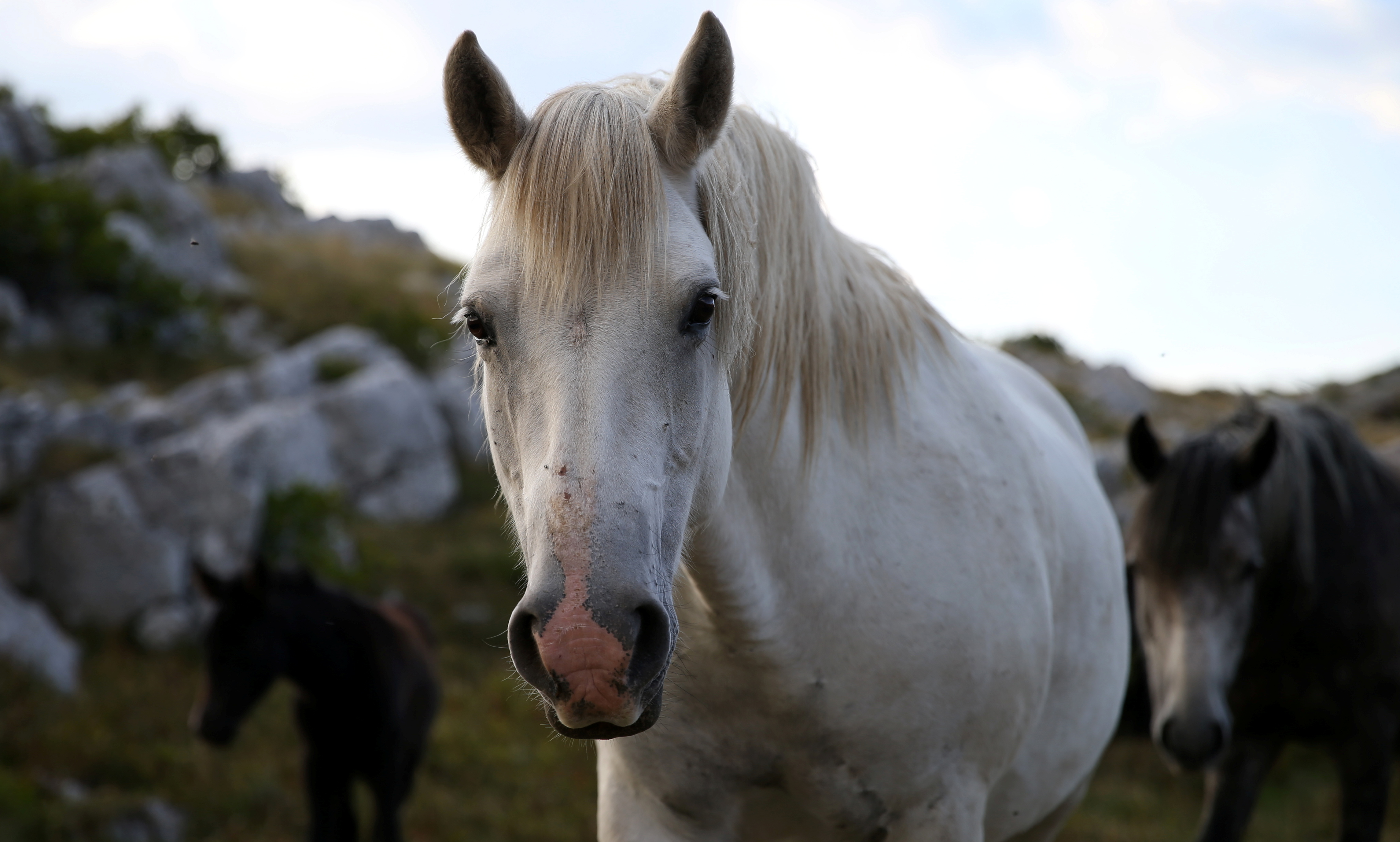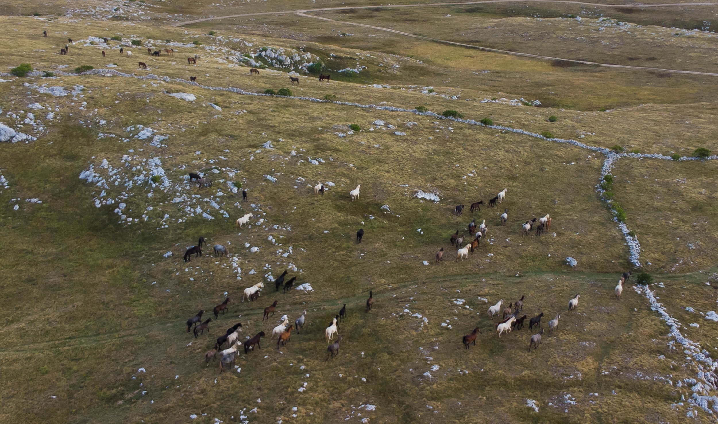 这是9月13日在波黑利夫诺附近的山上拍摄的野马。 新华社/路透