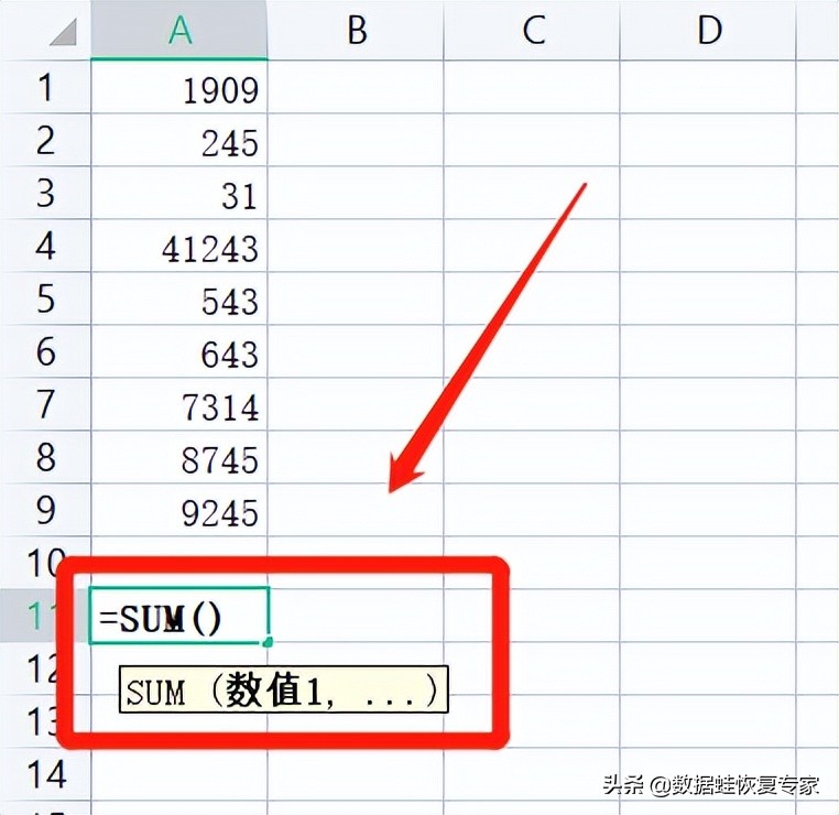 在最后求和的数值的空白单元格输入“=”,逐个将数据加起来,这也是比较麻烦的一种方法。