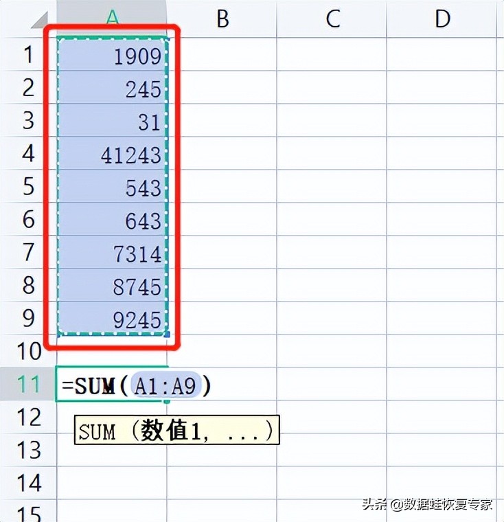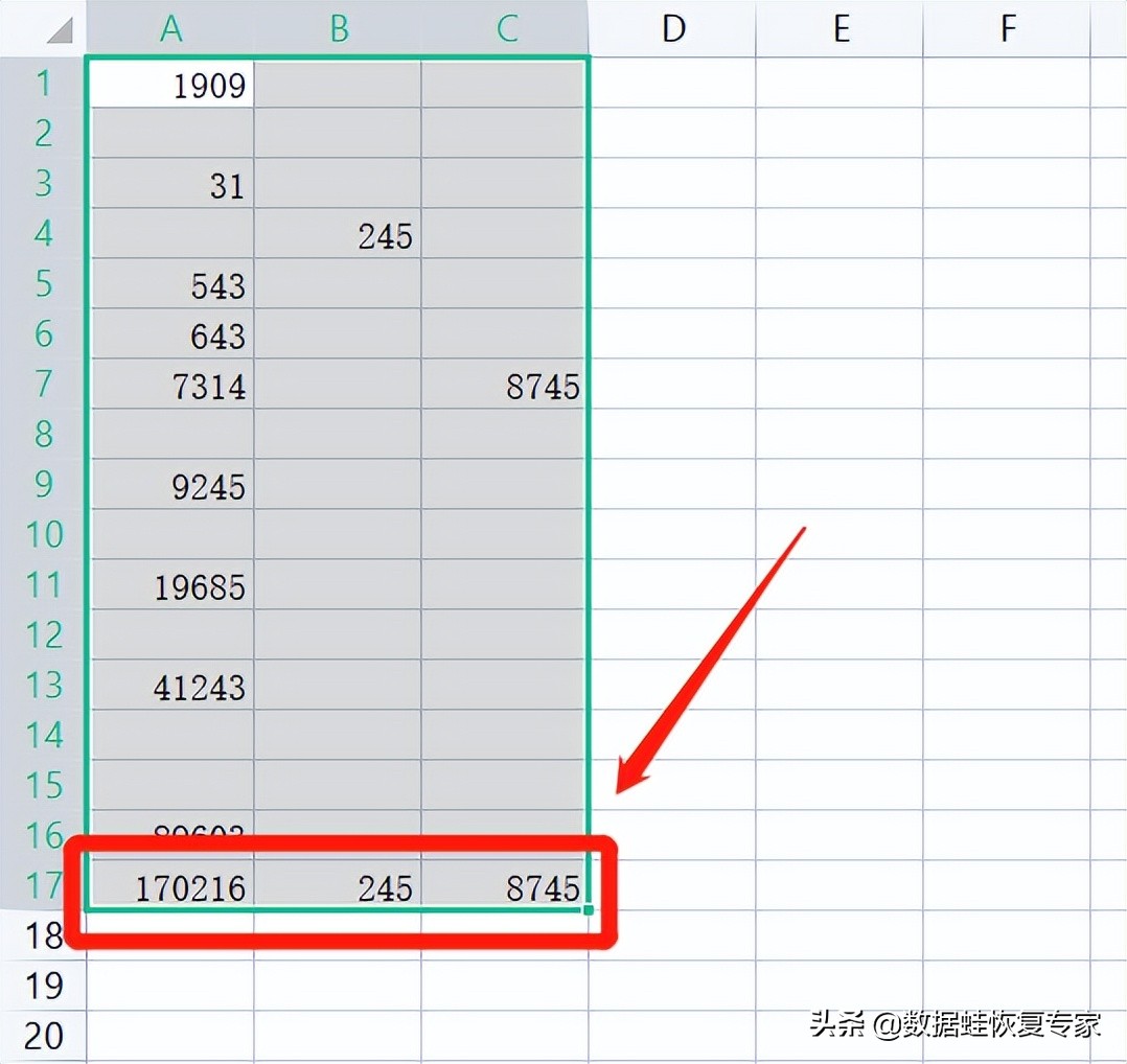 步骤二:选中需要求和的数据,点击enter键即可得到最后的求和数值。