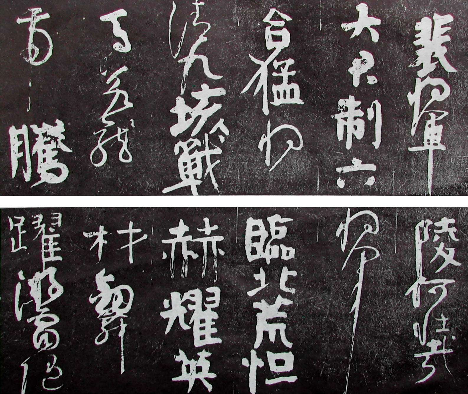 所谓“篆籀”,其实指的就是篆书和籀文。籀文出现在周宣王时期,当时的太史官籀对当时的文字进行了整理和规范,著大篆15篇,世称《史籀篇》,此后人们就把篆书和籀文放在一起,用以指称商周之际的远古文字。而颜真卿很明显对此有过研究。此后,天宝五年,他写于禾山石壁的摩崖书法“龙溪”二字,证实了颜真卿对于篆籀的研究。