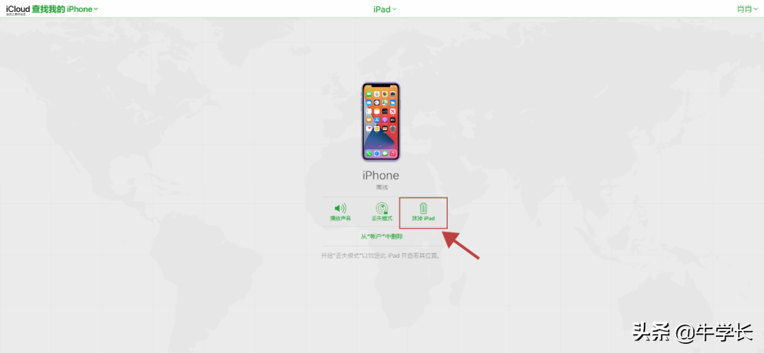 点击【抹掉iPhone】将会远程清除iPhone的所有数据,手机将恢复出厂设置,设备数据都将被清除。