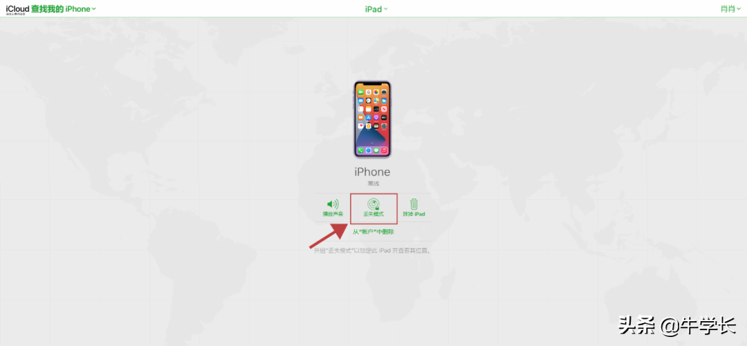 当手机遗失或被盗情况下,播放声音也无法找到iPhone的情况下,就可使用此功能,远程将iPhone设置成丢失模式。
