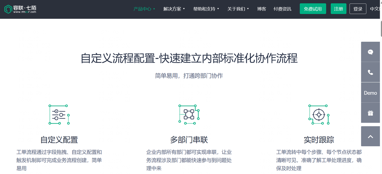 容联七陌是国内知名的工单系统提供商,美股上市公司。其产品主要解决企业售前咨询、售后服务、问题反馈等场景下生成的业务流程内部协作问题,企业可根据自身业务流程自定义工单流程,例如产品售前咨询、合同签订、业务受理、售后服务等。