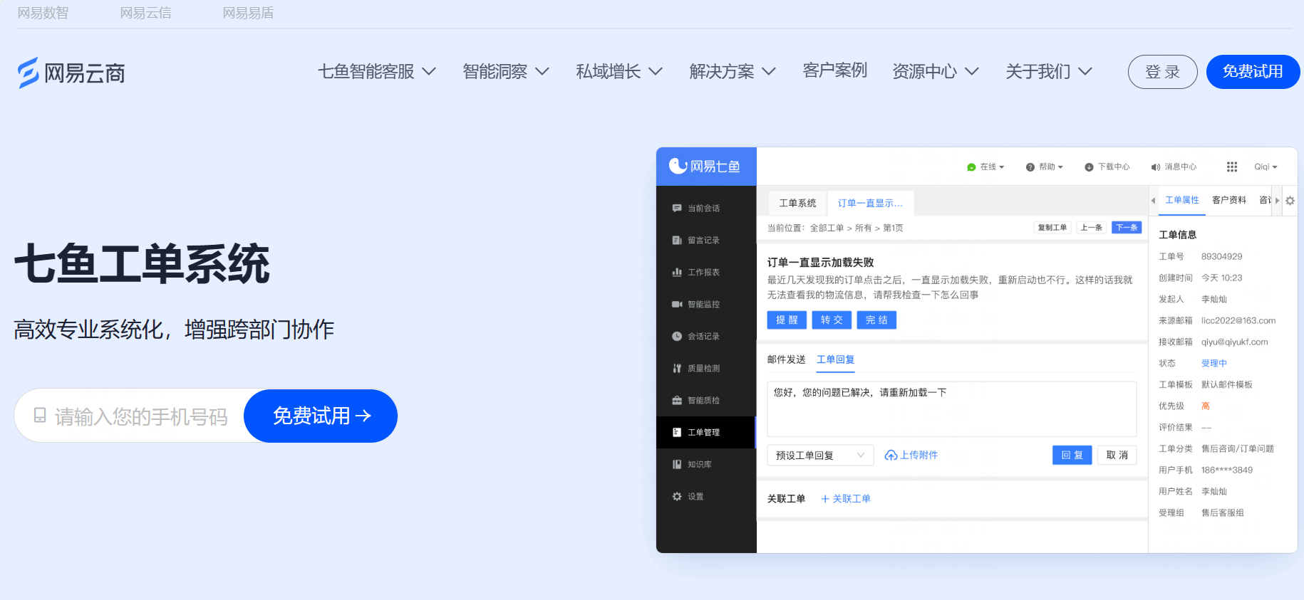 网易七鱼工单业务模式主要是解决在客服服务场景下企业内部之间的沟通协作问题。