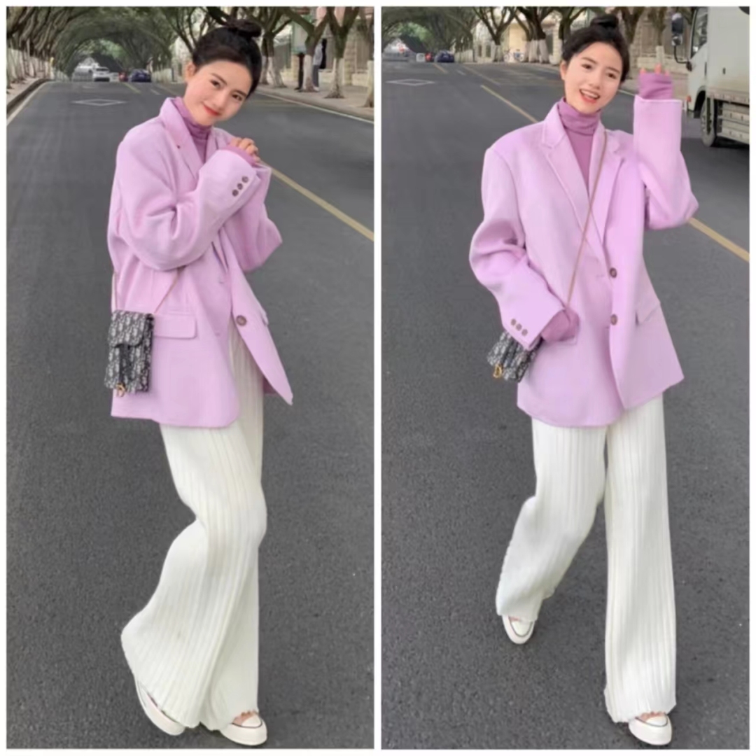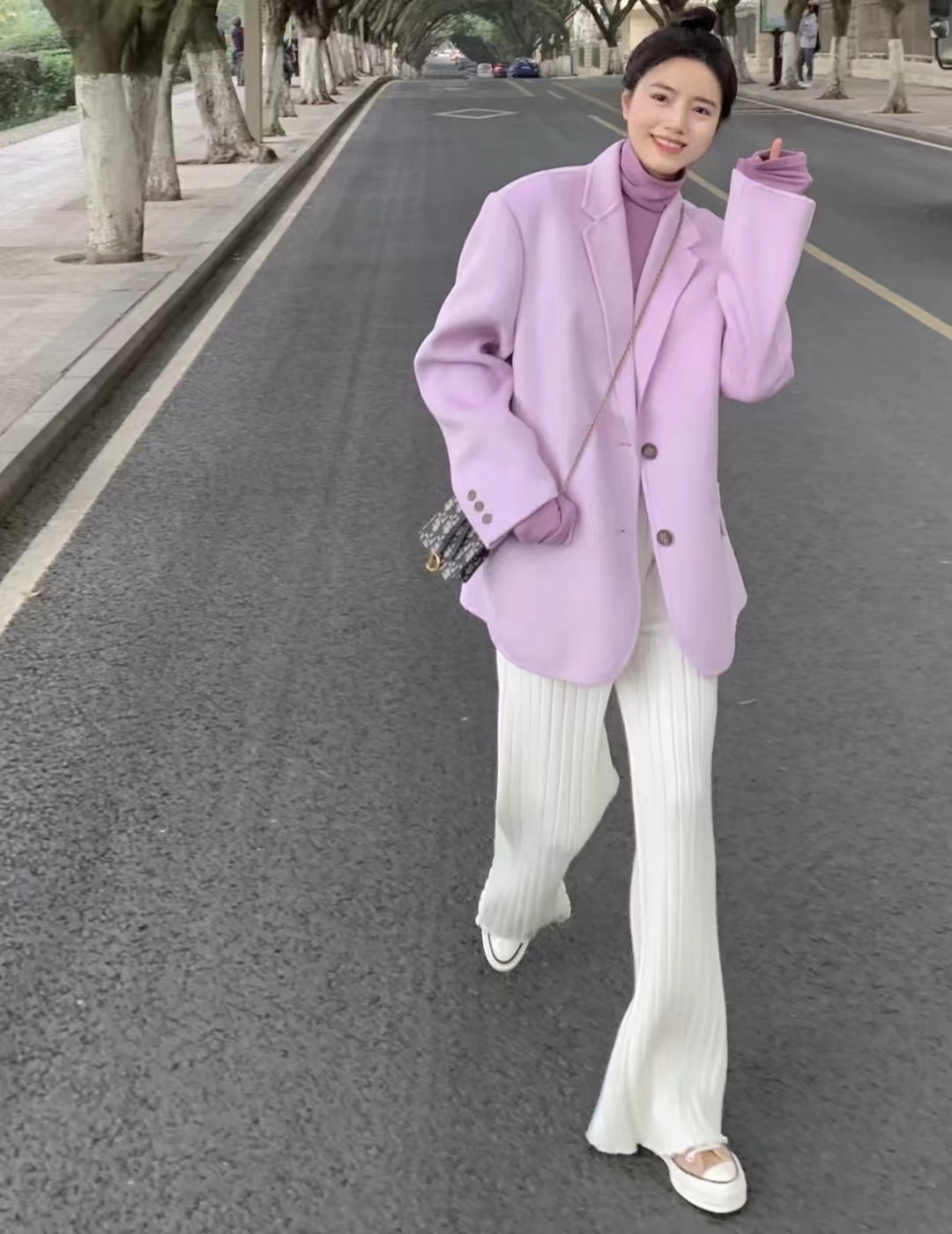 look3 粉色针织裤+香芋紫外套/深紫色打底