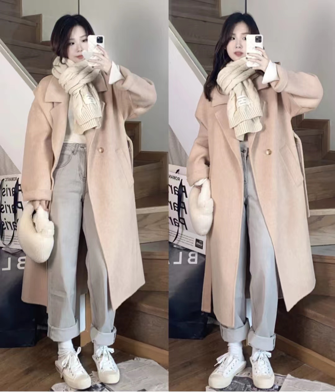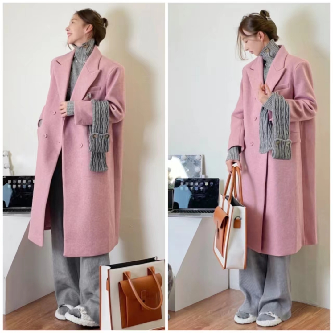 搭配了一套日常韩韩有很特别的粉+灰绝绝子配色!点缀米色的包包和围巾,奶huhu冬天氛围到位了!这个色儿在不同光线下可都太好看了,是三文鱼那种细腻的感觉!