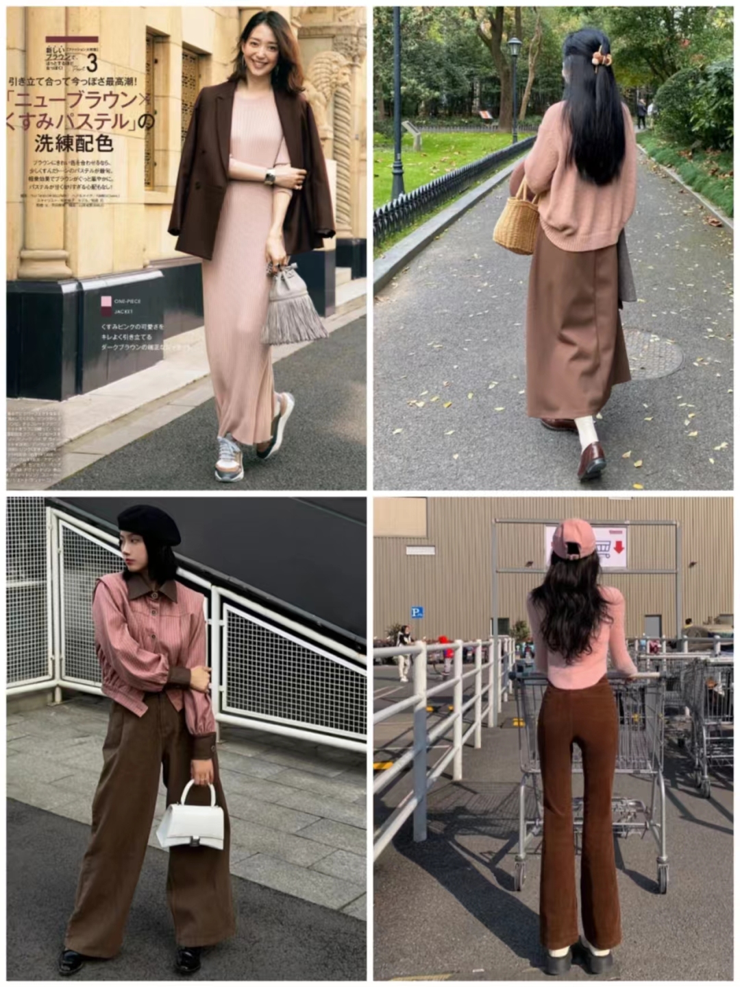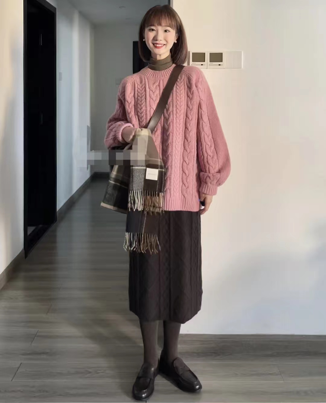 复古配色中尤其爱粉+棕,偏灰调的粉和深巧克力棕的结合太有氛围感,高领贴身打底和宽大毛衣一起穿,保暖和时尚度都up!有画报里的复古女孩那味道?