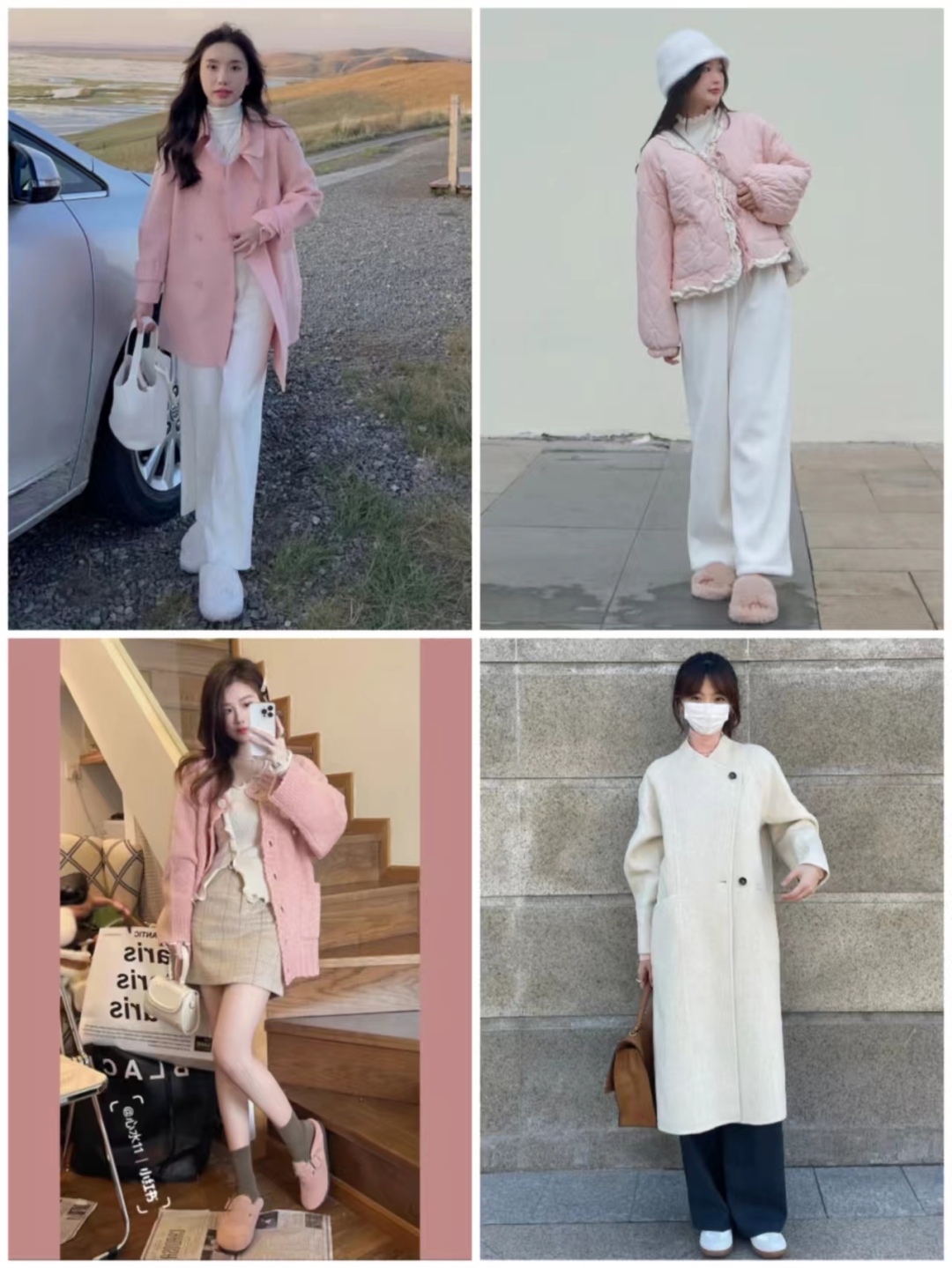 奶酷粉蓝给冬天点颜色!没有女生可以拒绝粉色吧,奶酷粉配蓝,休闲女孩也可以糖分超标?