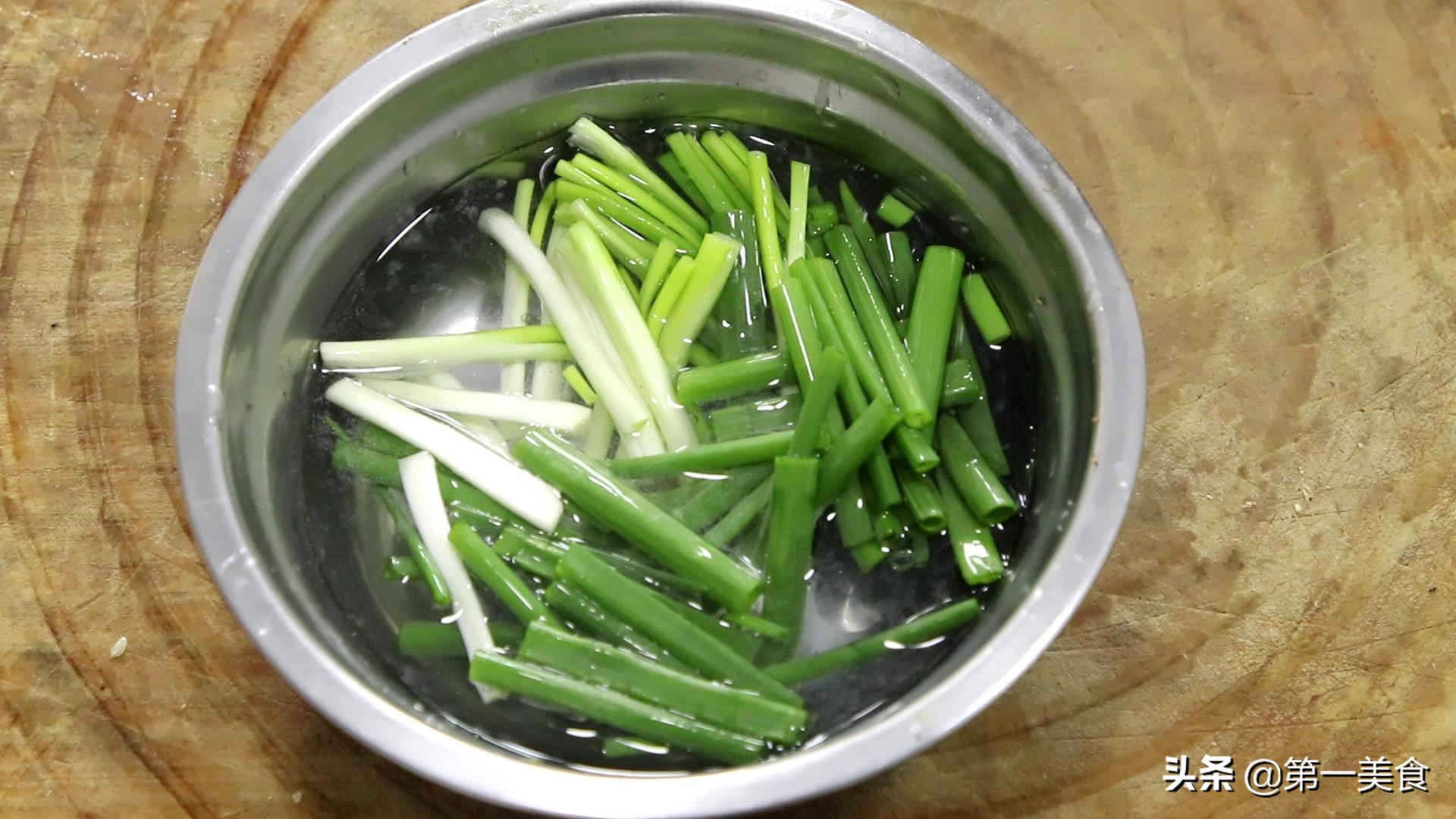 小葱几根,切成段放入装有清水的盆中浸泡10分钟。