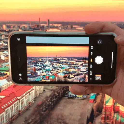 搭配iOS 13,iPhone 11的相机在功能以及交互上带来了很多新的提升。首先就是超广角画面的实时预览,在拍照页面可以看到,取景器内是普通的1倍画面,而原本的黑边处则默认显示0.5倍的超广角画面。当你手动调节画面时,画面会连贯流畅地在广角与超广角之间切换,这种体验可以用前所未有来形容。