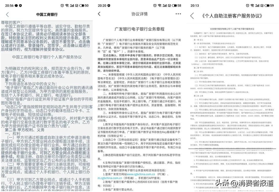 其中中国工商银行、广发银行、长安银行App在某款安卓手机上的行数甚至超过40行,字体行距未优化,阅读体验糟糕!