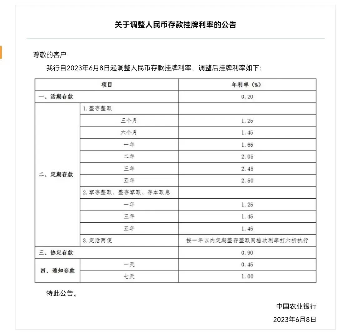 那目前农业银行的存款利率是多少呢?