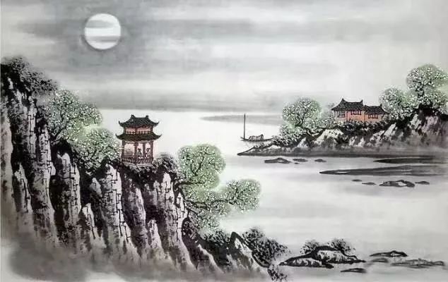江水和天空变成了一种颜色没有一点微小的灰尘,明亮的天空中只有一轮孤月悬挂。