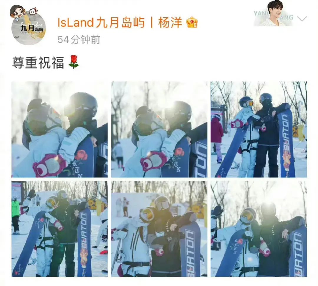 再加上杨洋站姐曾发的一组滑雪合照,这俩人的恋情似乎已经是公开的秘密。