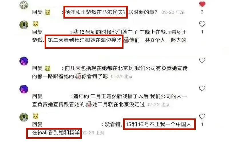 2月份,还有网友爆料说在马尔代夫的海边,看到王楚然和杨洋拥吻,王楚然一见到中国人就跑。
