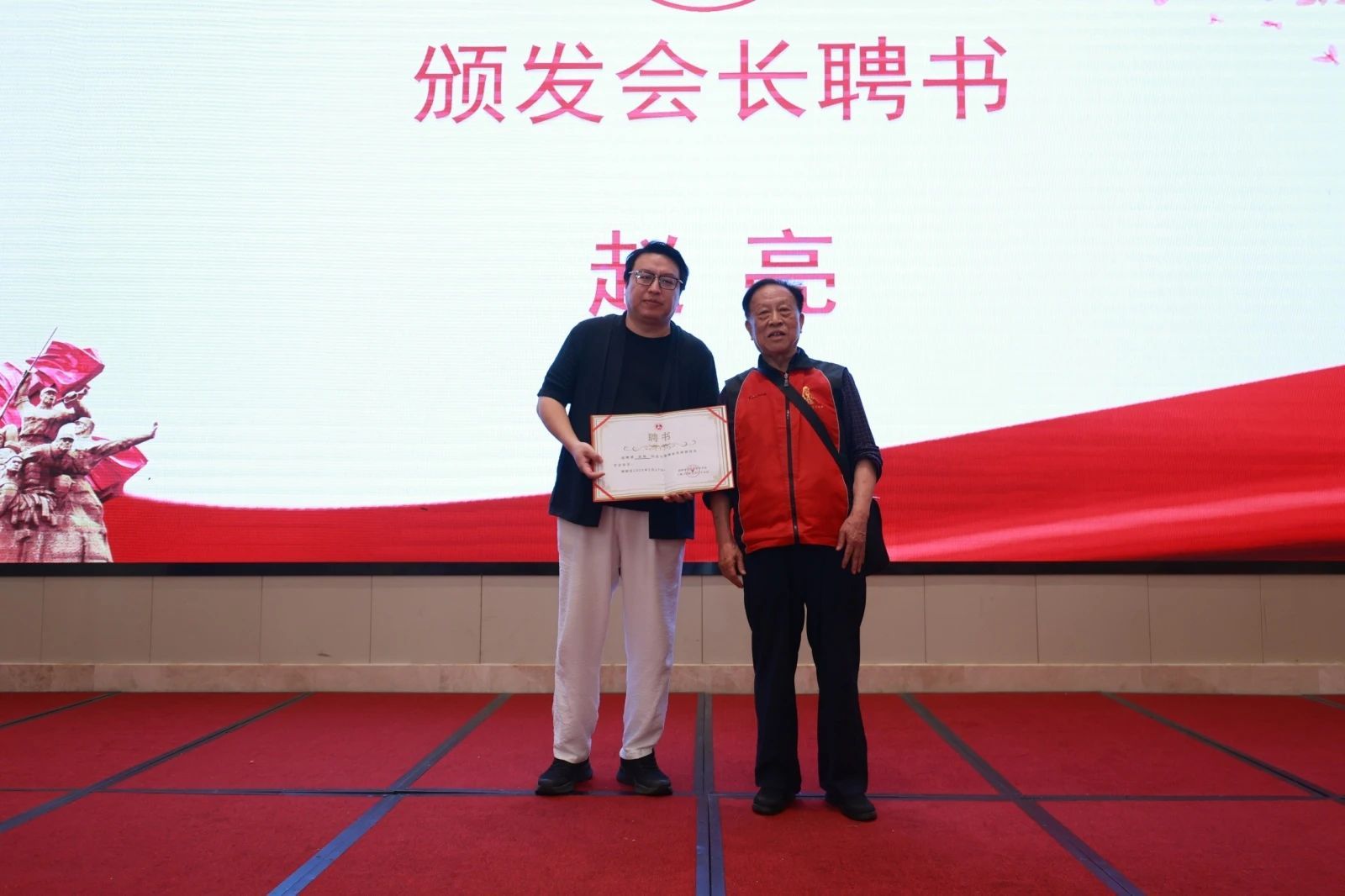 由学会老会长骆季超先生为赵亮会长颁发聘书。