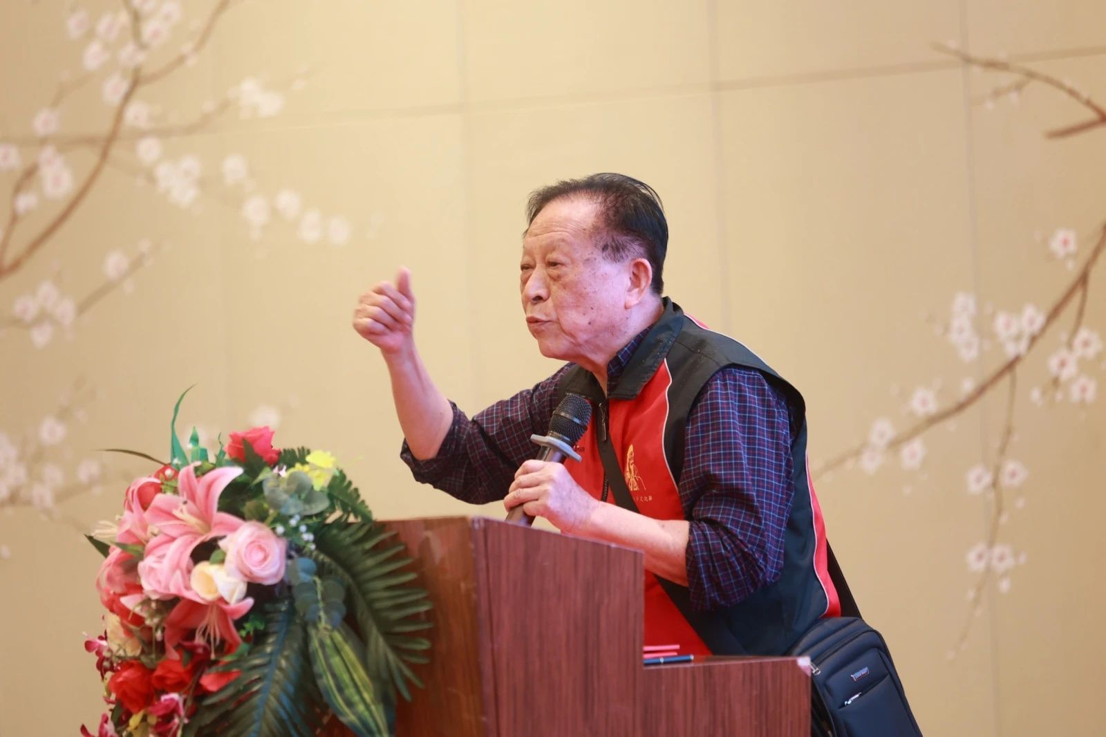 国家一级作曲家、民乐艺术终身贡献奖获得者、福建省民族管弦乐学会创会会长骆季超先生对学会的工作和所取得的成绩给予充分肯定,对新一届领导班子寄予厚望和期许,并向施冰清副会长赠送《爱我中华》二胡曲集。