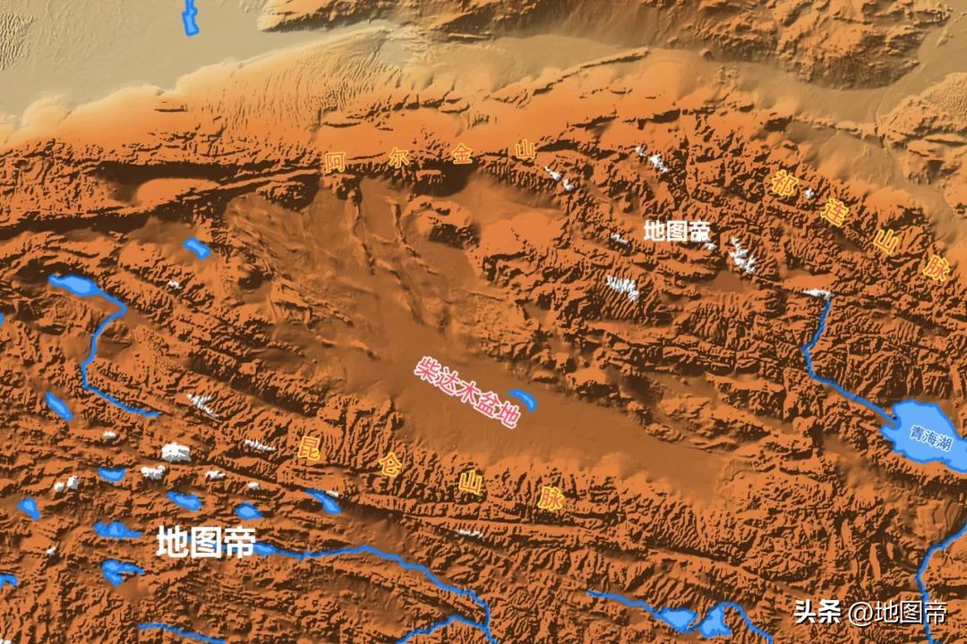 柴达木盆地位于青海西北部,四周高山按顺时针方向依次是:阿尔金山脉、祁连山脉的支脉党河南山和吐尔根达坂山及宗务隆山、昆仑山脉的鄂拉山和布尔汗布达山及祁曼塔格山。