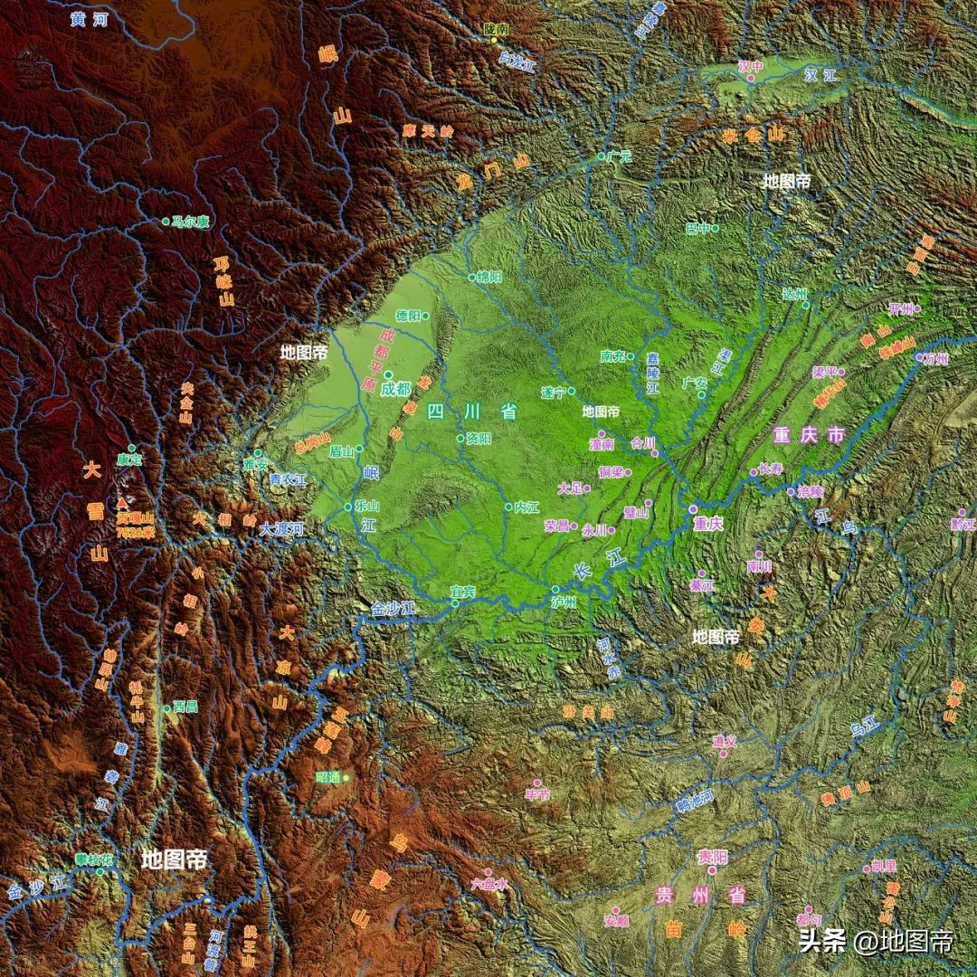 金沙江从四川盆地西南进入,与岷江汇流后称长江,从盆地东部的巫山峡谷流出。四川盆地有多条从北向南汇入长江的支流,从西到东有岷江、沱江、嘉陵江等。