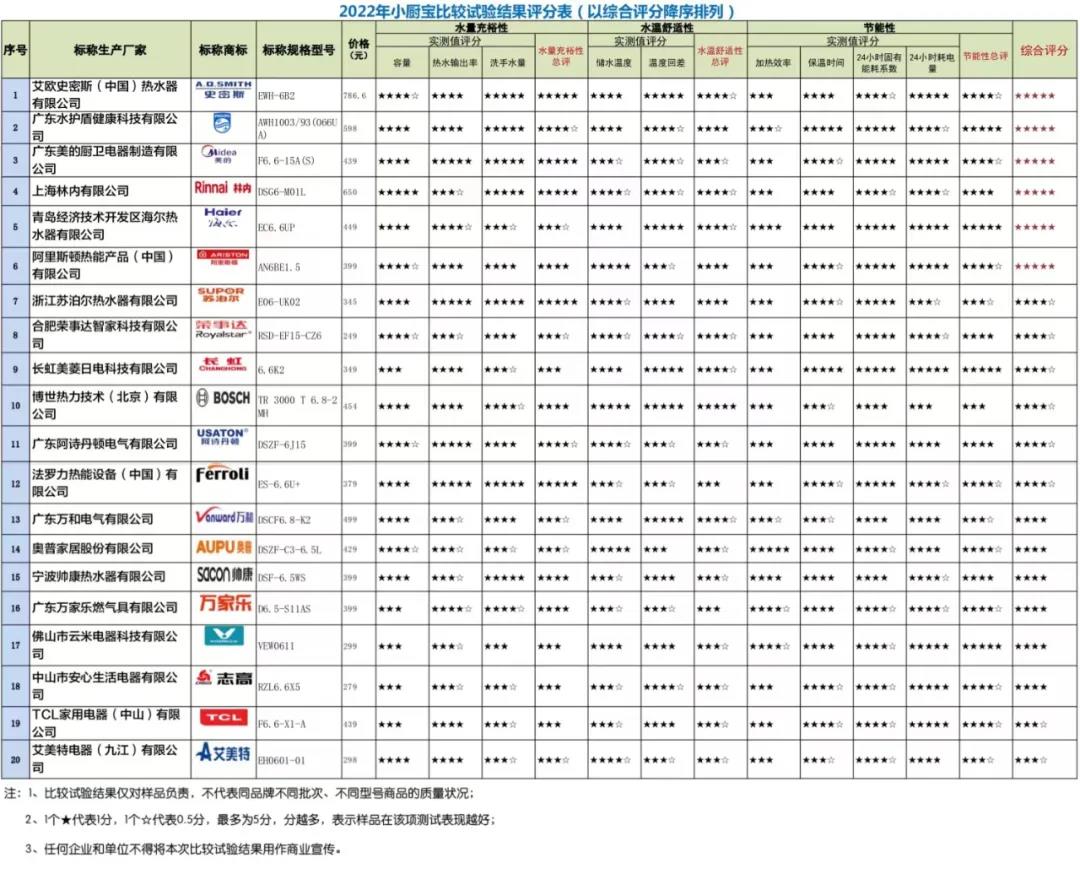 迷你储水式电热水器“小厨宝”可以实现热水即开即用,被称为“冬日里的福音”。近期,上海市消保委通过网络电商平台购买了20款“小厨宝”开展比较试验,委托上海市质量监督检验技术研究院对这些样品的水量充裕性、水温舒适性和节能性等进行了测试。