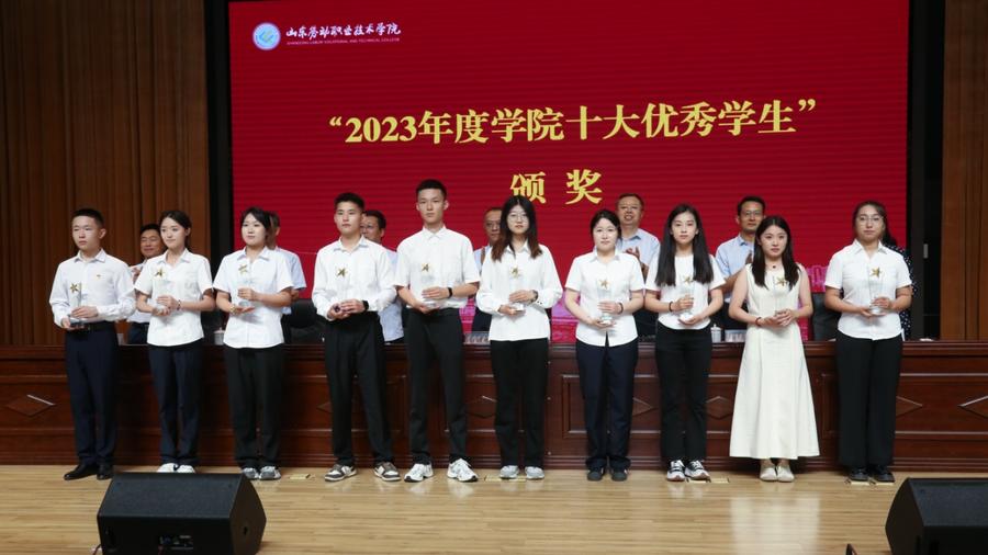 山东劳动职业技术学院党委副书记李华宾宣读了2023年度学院十大优秀学生表彰决定和2024届山东省优秀毕业生表彰决定。学院党委班子成员为“2023年度学院十大优秀学生”“2024年山东省优秀毕业生”颁发了荣誉证书。