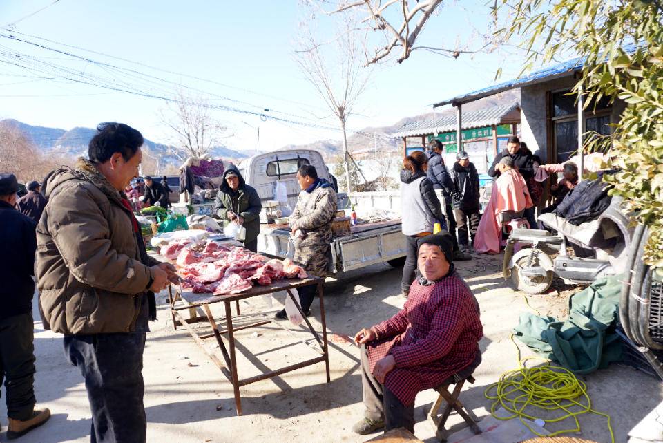 黄巢村三面环山,村里一条很深的沟渠,有溪水流向龙潭水库和黄巢水库。集市上也没啥新鲜东西,各地的集市都差不多。这里主要是周边村落的村民来赶集,看到还有少数轿车,说是在这里租房子住和城里来买房子人家的。