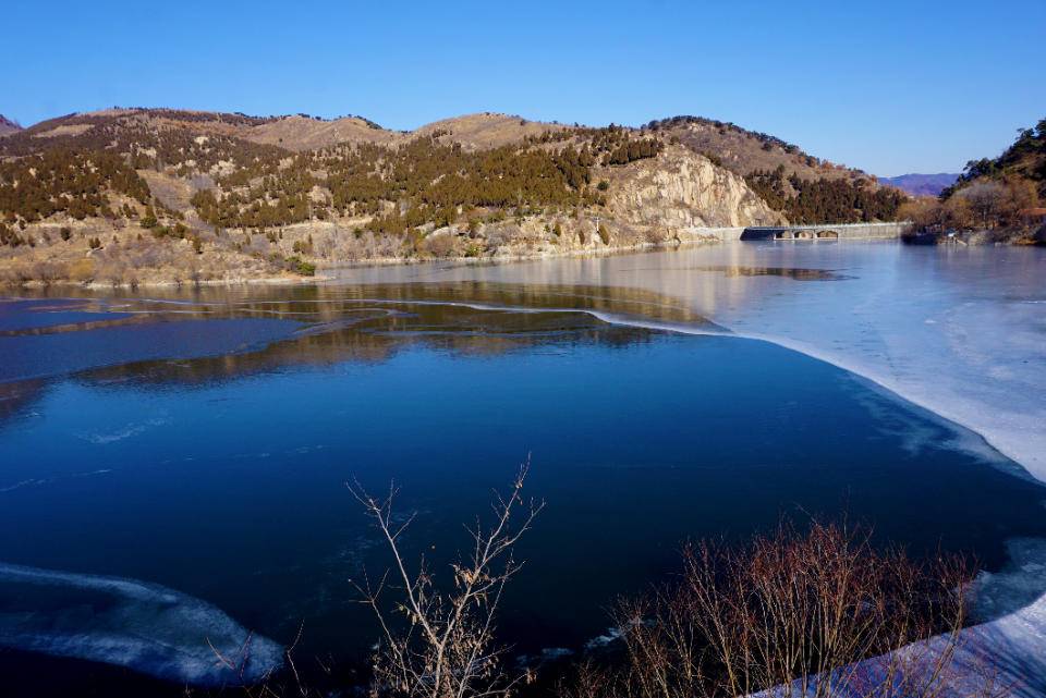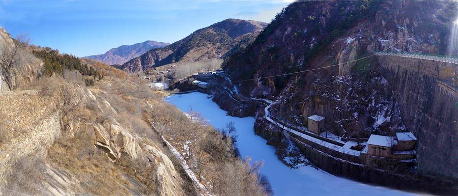 这座水库建于1962年,五年后建成。水库坝高50米,坝长380米。照了几张,便匆匆疾步返回,又沿着公路走了二三站到了于(榆)科村------