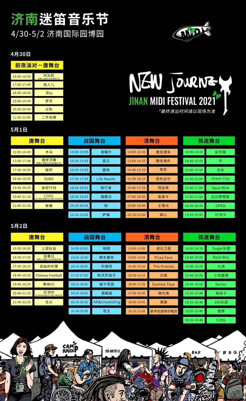 济南迷笛音乐节将于4月30日至5月2日在山东济南国际园博园举办,现场将设唐、战国、清和孩迷四大舞台;5月3日至4日,迷笛将移师滨州滨城区北海公园举办滨州迷笛音乐节,现场将设唐、战国、孩迷/嘻哈三大舞台。目前已经官宣全阵容&时间表,强大的阵容对于乐迷来说如同“过年”,详情请看海报。