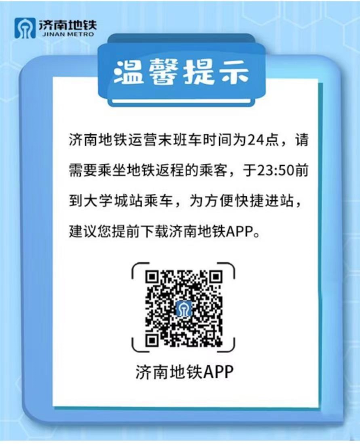 为了配合济南迷笛音乐节的活动举办,济南公交在官微发布消息,济南地铁将从4月30日起,将1、2、3号线运营时间延长至24点,并且在22点-24点之间将行车间隔调整为10分钟。这对于参加音乐节的乐迷朋友来说无疑是好消息,也疏解了园博园附近酒店住宿的压力。另外,本届迷笛音乐节特设免费接驳大巴,5月3日上午,将从济南迷笛现场出发至滨州迷笛现场,免费接驳迷笛乐迷们。这份爱也来自滨州,一座热忱,真诚,有温度的城市,具体方案不日公布。