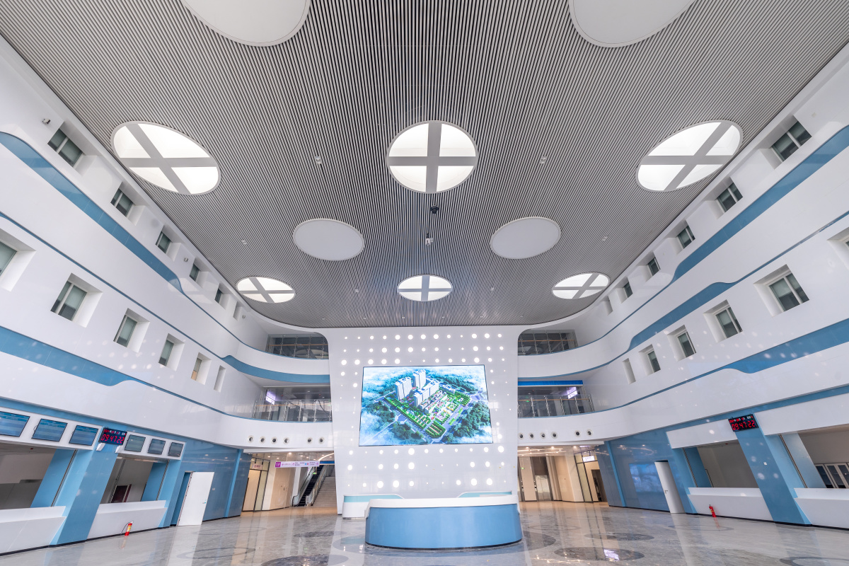 院区立面造型简洁明快、美观大方,室内设计坚持安全、环保、实用的原则,确保功能明确、布局合理。